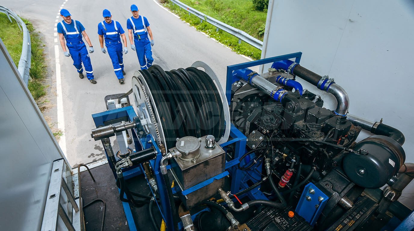 С учётом планировки и непрерывной работы объекта был установлен ориентировочный срок в 15 дней. Чтобы его соблюсти, мы применили компактную технику, позволяющую эффективно работать внутри здания, и использовали несколько типов насадок под разные участки трубопровода.